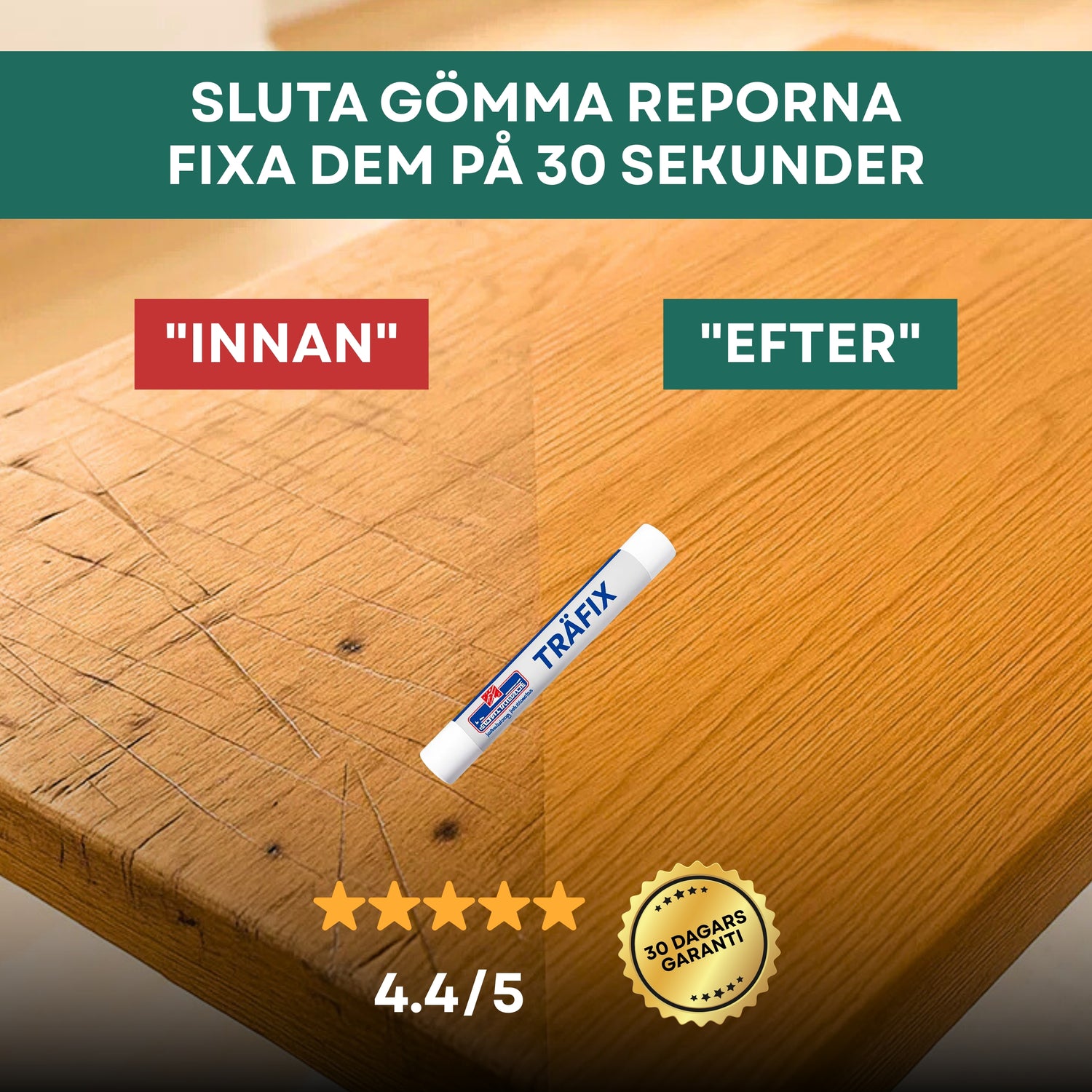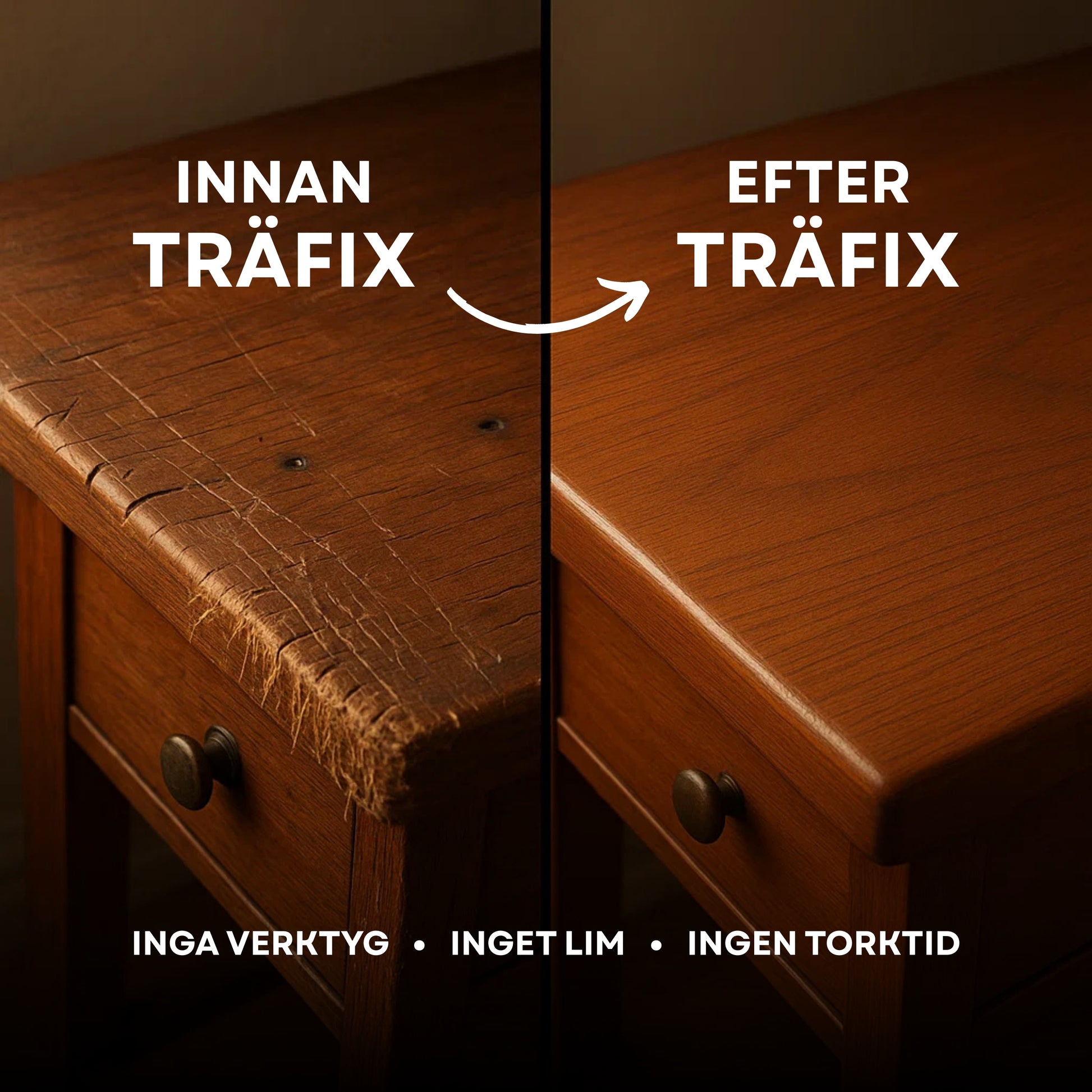 Den där repan i matbordet som irriterar dig varje morgon? TräFix täcker allt, du kommer inte ens minnas var skadan var.
